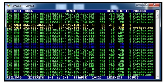A Firewall++ Windows operációs rendszeren elindított Processek hálózati adatforgalmát lehet kilistázni, továbbá szabályokat készíthetünk, amivel akár egy log fájlként lehet a hálózati információkat eltárolni. A rosszindulatú szoftverek hálózati adatforgalmát is blokkolni tudjuk.