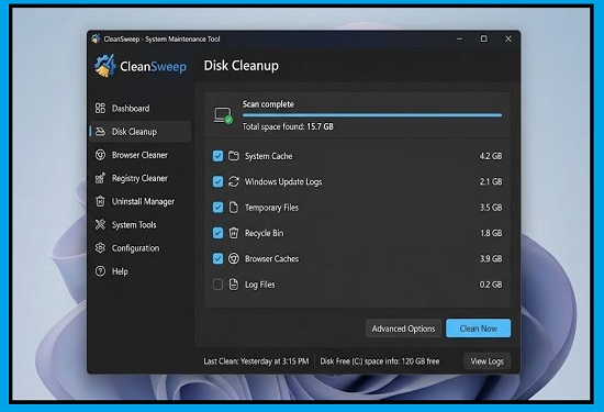 A szoftver hatékonyan azonosítja és távolítja el a felhalmozódott gyorsítótár bejegyzéseket és az elavult ideiglenes fájlokat a rendszermeghajtónkról. A Windows egyik legnagyobb hibája a szoftverek eltávolítása után visszamaradó adatszemét. A CleanSweep karbantartó szoftver egyik ritkábban emlegetett képessége a teljes körű parancssori támogatás. Lehetővé teszi a maradvány fájlok automatizált felszámolását. Ez különösen a tapasztaltabb felhasználók számára nyújt előnyt. A parancssoros futtatás segítségével a művelet beépíthető az ütemezett feladatokhoz, vagy szkriptekbe is.