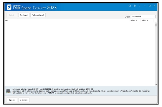 A szoftver az indítófelületén a tartalmakat struktúra, fájl, illetve akár fájlformátum alapján is ki tudja listázni. A szoftverrel a nagyobb mérettel elérhető tartalmakat egy grafikonon, százalékos értékben is megtekinthetjük. Az Ashampoo Disk Space Explorer nagy méretű fájlok kilistázásához kiváló.