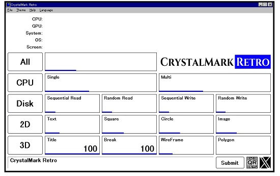 A különlegessége abban rejlik, hogy rendkívül széles körű támogatással rendelkezik a CrystalMark Retro Portable. A hardverek teljesítményének mérésével, azonkívül OpenGL tesztek futtatásával tudja kiértékelni a számítógépünk sebességét. Közvetlen összehasonlíthatóak a különböző számítógépekkel.