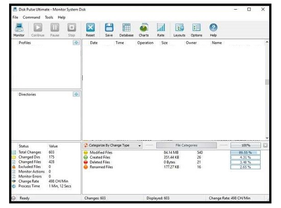 Egy rendkívül hatékony rendszer monitorozó program a Disk Pulse Pro, amely a meghajtók valós idejű megfigyelésére specializálódott. A szoftverrel nyomon követhetjük a fájlrendszerben bekövetkező változásokat, beleértve a fájlok és mappák létrehozását, módosítását, törlését, valamint a biztonsági és metaadatok változásait.