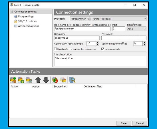 Egy nagyszerű fájlkezelő program, amely lehetővé teszi a felhasználók számára, hogy fájlokat töltsenek fel helyi számítógépről egy szerverre. A művelet időzíthető. Meghatározhatjuk a forrás mappát a helyi számítógépen, valamint a cél mappát a távoli szerveren, és az FTP kliens szoftver elvégzi az átvitelt a beállított paraméterek alapján. Az FTPGetter Standard támogatja az FTP és FTPS szerverekkel való biztonságos kapcsolatot, biztosítva a feltöltött fájljaink védelmét.