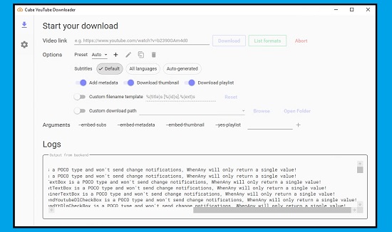 YouTube videók kötegelt letöltési munkafolyamatokhoz futtatható a Cube YouTube Downloader.