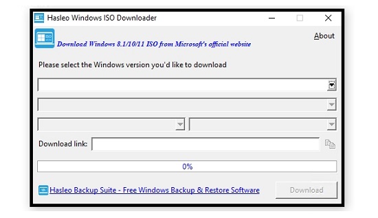 A Hasleo Windows ISO Downloader egy ingyenes, Windows telepítők letöltéséhez futtatható eszköz amivel a tartalmak a hivatalos oldalról szerezhetőek be. Nem kell installálni. A letöltésvezérlő Windows 8.1/10/11 ISO lemezképekhez hatékony.