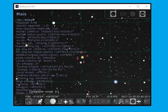 Egy teljesen ingyenesen használható, akár csillagászati célokra is felhasználható 3D grafikára épülő szoftver a Stellarium. A program az összes ma fellehető platformra elérhető, legyen az Linux, Windows 10, vagy akár Android rendszer. Mindenképp érdemes kipróbálni.