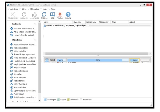 Ha merevlemezek particionálásáról van szó mindenképp érdemes kipróbálni az alábbi szoftvert ami egy megnövelt funkcionalitású particionáló program ami lemez, illetve Windows klónozási műveletekhez is vitathatatlanul az egyik leghatékonyabb megoldás. A NIUBI Partition EditorPortable egy több különleges szolgáltatással kifejlesztett particionáló program amivel módosítani tudjuk a merevlemezeink partícióit.