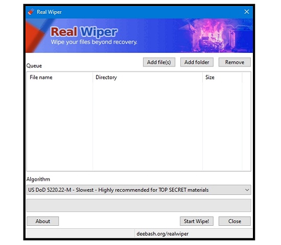 A Real Wipe megakadályozza, hogy a kíváncsiskodó jogosulatlanok hozzá tudjanak a privát fájljainkhoz férni, annálfogva a legmodernebb katonai fájltörlési módszerrel megsemmisíti meg. Minden egyes tartalmat felülír a szoftver, és minden fájlt helyreállíthatatlan módszerrel tud törölni.