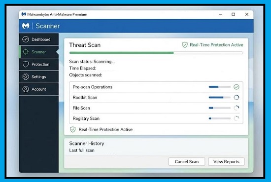 A Malwarebytes Anti-Malware kiemelkedő hatékonyságát a folyamatosan aktív, valós idejű védelem adja, amely már a behatolási kísérlet pillanatában blokkolja a gyanús folyamatokat. A szoftver rugalmasságát a több keresési eljárás biztosítja. Lehetővé téve a gyors ellenőrzést, a teljes átvizsgálást vagy akár az egyéni igényekre szabott szkennelést is. Az alábbi oldalon férhető hozzá.
