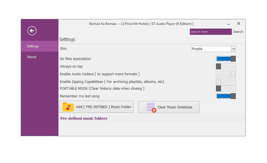 Az ST Audio Player Portable egy ingyenes, szabadon kipróbálható zene lejátszó szoftver amit nem kell telepíteni, néhány kattintással választhatóak ki azok a formátumok amiket vele szeretnénk lejátszani alapértelmezetten. ID3 tag támogatás, skinezhető felület jellemzi.