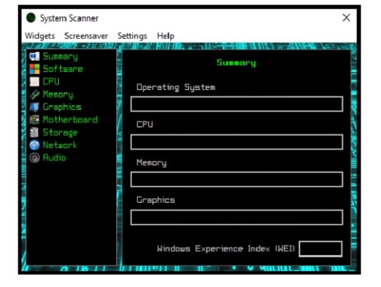A System Scanner a PC-t tükröző szoftvereinkről és a hardverektől tud rendszer információkat megjeleníteni. Egy gyönyörű grafikai indítófelületen tudja a rendszer információkat láthatóvá tenni ami az alaplap, a memória, a processzor, a Videókártya, azonfelül a merevlemez részleteit határozza meg. Widget felületen is megjeleníthetőek a számítógéppel kapcsolatos tulajdonságok és a számítógépet jellemző teljesítmény. A Free alkalmazás Flash meghajtókról futtatható kiadásban is beszerezhető.