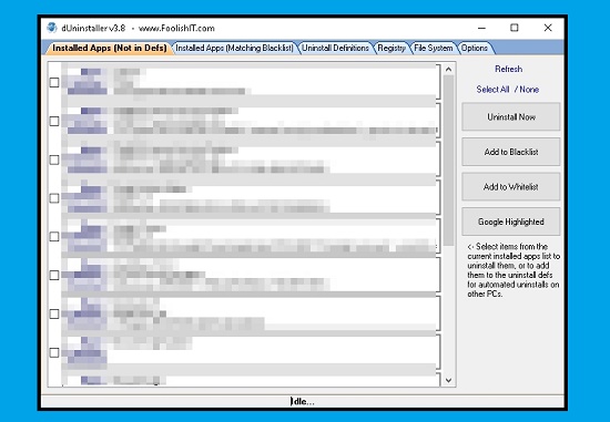 Ingyenes hordozható program amivel a már fölösleges alkalmazások uninstallálhatóak, csoportosan törölhetünk egyszerre több szoftvert. Tiltó, illetve engedélyező listákat lehet létrehozni ami rengeteg alkalmazás törléséhez választható. A dUninstaller a beállításjegyzékek kezeléséhez, az uninstallálásukhoz is használható.