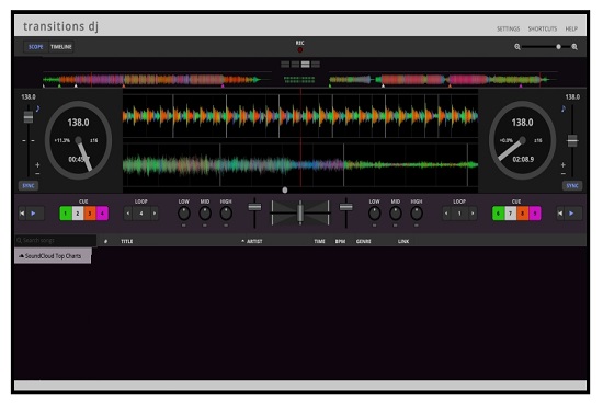 Modern szolgáltatásoknak lehetünk részesei a Transitions DJ programmal ami funkciók széles skáláját tartalmazza mixek létrehozásához. Hogy a DJ program minden felhasználói igénynek megfeleljen, a zenei fájljainkat akár keresni is tudjuk a SoundClound szolgáltatásán.