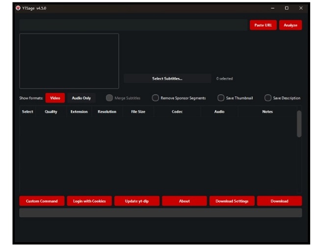 Rengeteg formátumhoz futtatható Videó letöltő program az YTSage